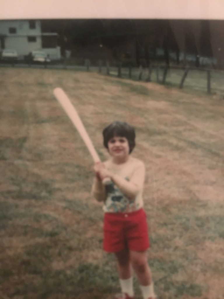 Shortly after this picture was taken, I heard phrases from adults and kids just a hair older than me (though back then, the age difference felt monumental) that altered my perception of that little girl and her bat: